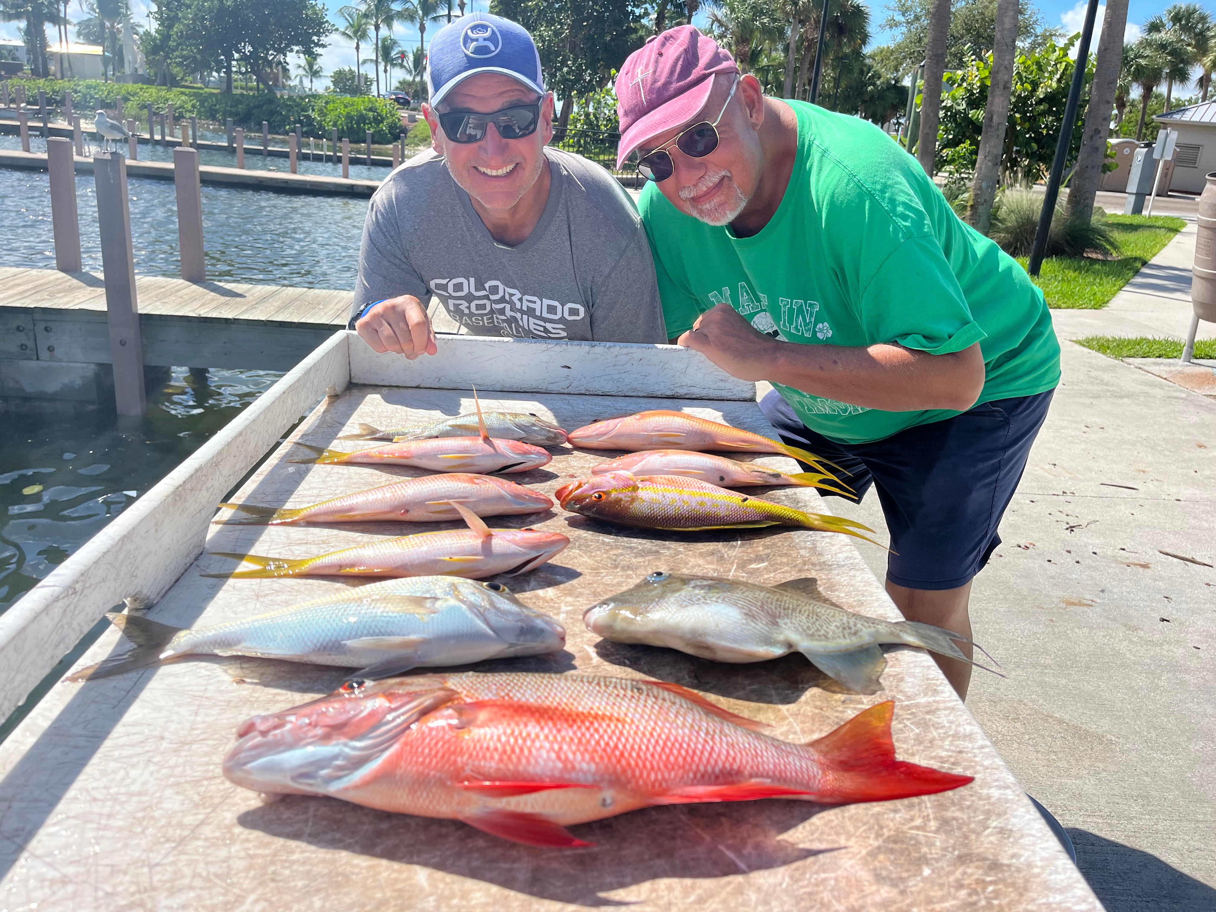 Mutton Snapper: These guys are the prize of the reef. Known for their strong fights and delicious fillets, muttons can grow up to 20 pounds or more. They're crafty feeders, often nibbling at your bait before committing. Late spring and early summer are prime time for big muttons, but we catch them year-round. When you hook one, get ready for a battle - they'll try to dive back into the reef, so you'll need to turn their head quick.